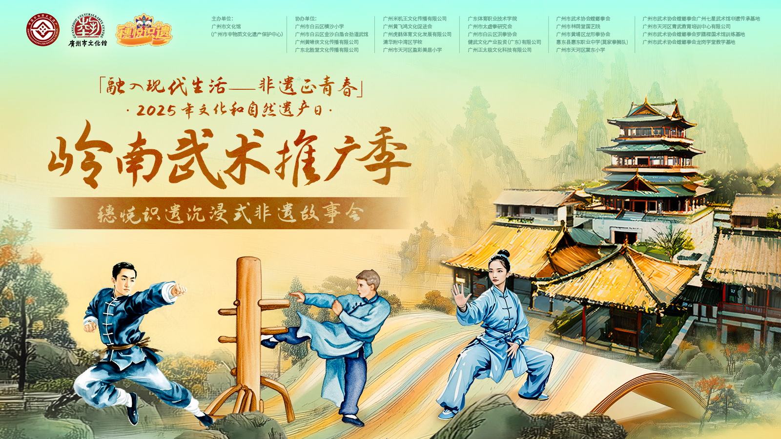 作为广州2025年文化和自然遗产日系列活动的重要组成部分,本次岭南武术推广季将结合武术展演、文化展览、学术交流、成果发布等多元形式,多角度展现岭南武术的深厚底蕴,展示传统体育类非遗在青年传承、现代生活融合与科技赋能下的蓬勃生命力。